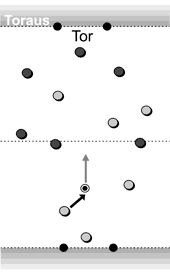Ball in Richtung des gegnerischen Tores rollt. Es wird dabei mit demjenigen