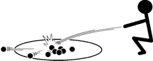 eines Spielsteines, diesen so gegen den Ball zu stoßen, dass der
