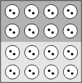 2 Reihen mit je 6 Mulden und zwei Sammelmulden (das Kalaha).