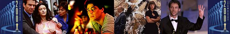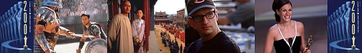 ![]() Bester Art-Director: Tim Yip (»Tiger & Dragon«) Beste Kamera: Peter Pau (»Tiger & Dragon«) Bester Schnitt: Stephen Mirrione (»Traffic«) Beste Special-Effekte: »Gladiator« Beste Sound Effekte: Jon Johnson (»U 571«) Bester Ton: Ken Weston (»Gladiator«) Bestes Kostümdesign: Janty Yates (»Gladiator«) Bestes Make-Up: Rick Baker und Gail Ryan (»The Grinch«) Bester Kurzfilm: Florian Gallenberger, »Qiero ser« Bester animierter Kurzfilm: Michael Dudok De Witt »Father & Daughter« Bester Dokumentarfilm (kurz): Tracy Sevetean »Big Mama« Bester Dokumentarfilm (lang): »Kindertransport« Ehren-Oscar Kamera: Jack Cardiff Ehren-Oscar Drehbuch: Ernest Lehmann Irving G. Thalberg Award für ein Lebenswerk: Dino De Laurentiis Bester Originalsong: »Things have changed« ---------------------------von Bob Dylan (»Wonder Boys«) Beste Filmmusik: Tan Dun (»Tiger & Dragon«) Bestes adaptiertes Drehbuch: Stephen Gaghan (»Traffic«) Bestes Original-Drehbuch: Cameron Crowe (»Alomst Famous«) Beste Nebendarstellerin: Marcia Gay Harden (»Pollock«) Bester Nebendarsteller: Benicio Del Toro (»Traffic«) Bester Hauptdarsteller: Russell Crowe (»Gladiator«) Beste Hauptdarstellerin: Julia Roberts (»Erin Brockovich«) Bester ausländischer Film: »Tiger & Dragon« von Ang Lee Beste Regie: Steven Soderbergh (»Traffic«) Bester Film: »Gladiator« GLADIATOR: